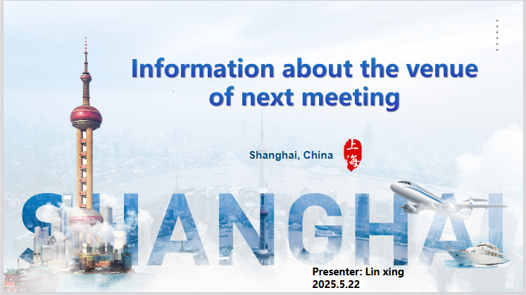 下次全会(2025年秋季)将以线下的方式(提供远程接入)于以下时间在中国上海召开: