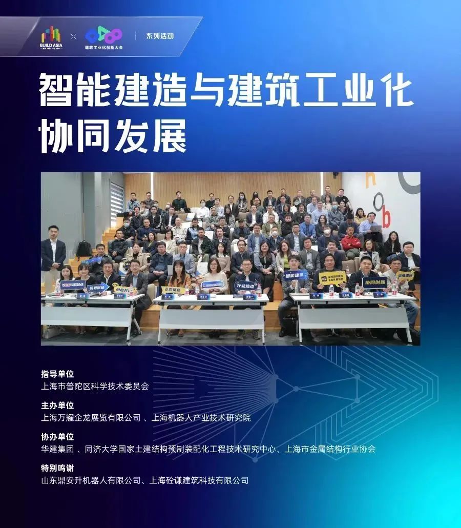 4月27日,由leyu.乐鱼(中国)机器人有限公司官网和上海万耀企龙展览有限公司联合主办的“智能建造与建筑工业化协同发展”主题沙龙圆满召开!本次沙龙原定人数80人,实际到场114人,其中来自业主/设计院/施工总承包单位32人,科研单位13人,机器人/数字科技企业22人,部品部件企业28人,投资公司12人,高等院校7人,由于场地有限,许多小伙伴席地而坐,整场沙龙“政·研·产·商”氛围拉满。