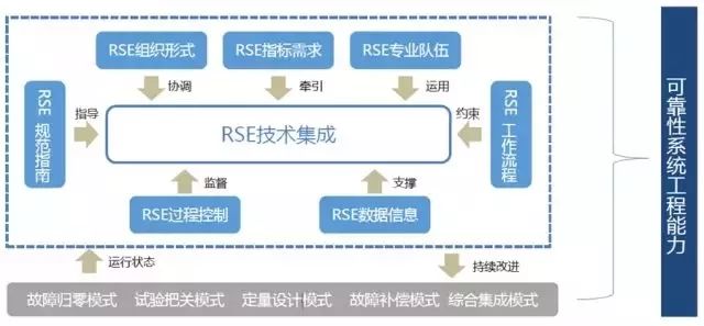 实施可靠性系统工程的八个要素、五个应用模式,共同构成了企业的可靠性系统工程能力。八个要素,即指标需求、组织形式、专业队伍、工作流程、规范指南、过程控制、数据信息、技术集成。五个应用模式,即故障归零模式、试验把关模式、定量设计模式、故障补偿模式、综合集成模式。